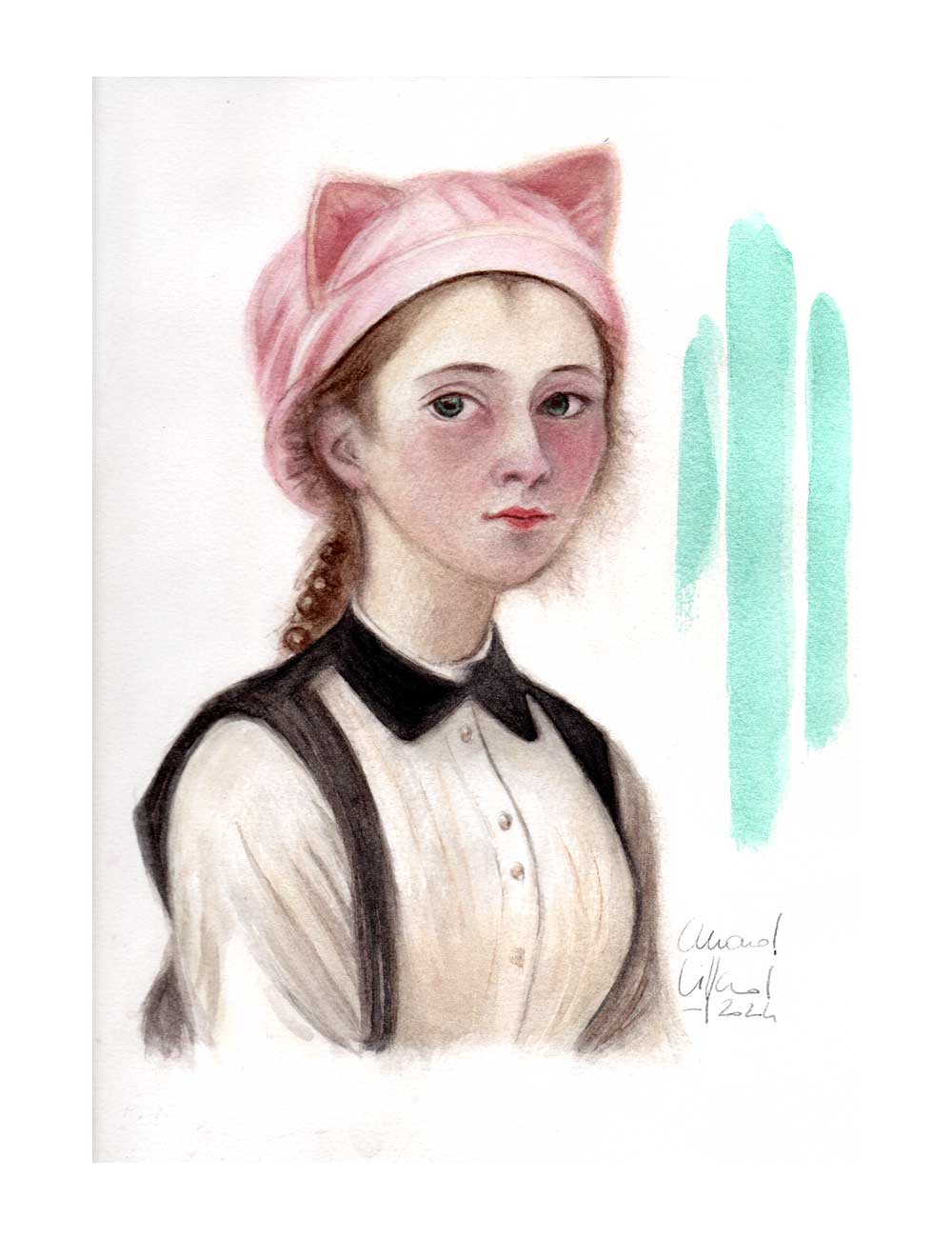 Aquarelle originale 23cmx31cm « Le chapeau »